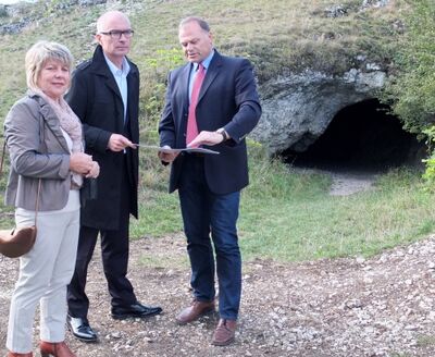 Der SPD-Europaparlamentsabgeordnete Peter Simon (Mitte) kam auf Einladung des SPD-Landtags-abgeordneten Andreas Stoch in den Landkreis Heidenheim. Unter anderem machte sich der EU-Parlamentarier vor Ort ein Bild vom Großvorhaben „Archäopark“ in Niederstotzingen, das durch EU-Fördergelder erst möglich wurde.