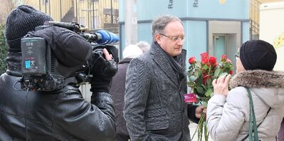 Anlässlich des Internationalen Frauentags verteilte Andreas Stoch gemeinsam mit den Jusos Rosen auf dem Heidenheimer Wochenmarkt. Dabei erhielt der Abgeordnete für seine bisherige Arbeit viele positive Rückmeldungen und Glückwünsche zur anstehenden Wahl. Für diese Wahlkampfaktion interessierte sich auch der SWR und begleitete Stoch und sein Team. Die Ergebnisse der Dreharbeiten sind am Wahlsonntag in der Landesschau Aktuell zu sehen. (Weitere Fotos in der Bildergalerie)